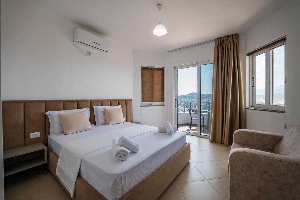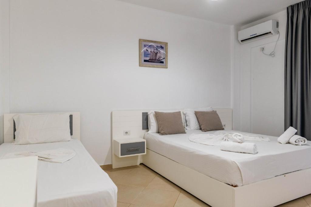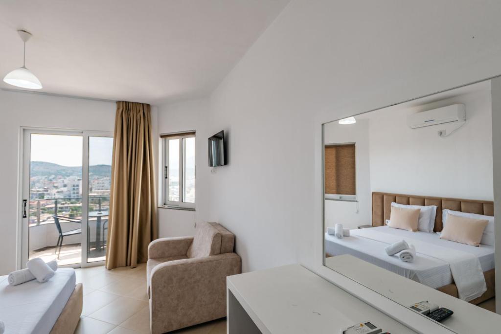 Posizione: nuova struttura, molto curata è situata nella suggestiva località balneare di Ksamil, una pittoresca cittadina costiera dell’Albania. Dista appena 15 km dalla città di Saranda (circa 25 - 30 minuti in auto). L’albergo sorge in una zona tranquilla offrendo ambienti molto accoglienti, un’atmosfera familiare e una splendida vista panoramica sulla baia e sulla pineta circostante. Grazie alla posizione strategica, permette di raggiungere facilmente il centro della località, ricco di ristoranti, bar e attrazioni turistiche. Una scelta ideale per coppie in cerca di relax e per famiglie che desiderano comfort e tranquillità.