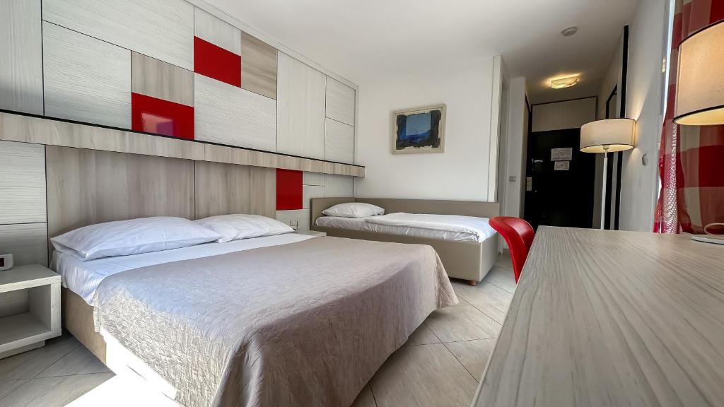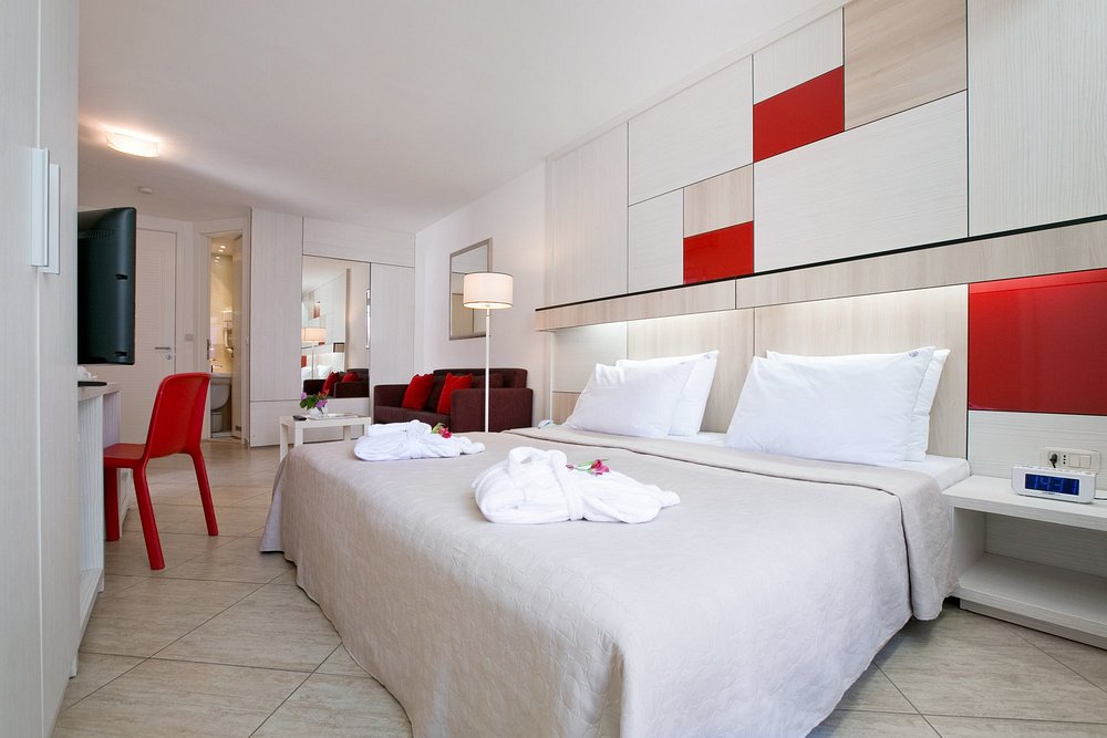 Camere: dotate di aria condizionata, TV satellitare a schermo piatto, mini frigorifero, cassette di sicurezza, Wi-Fi gratuito, servizi privati, prodotti da bagno in omaggio, asciugacapelli e balcone o terrazza. Le camere familiari per 4 persone (2 adulti + 2 bambini sotto i 12 anni) sono le camere matrimoniali standard + un doppio divano letto (superficie camera circa 24 m²).